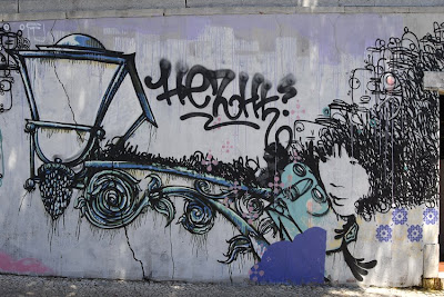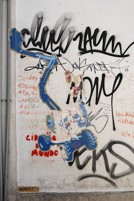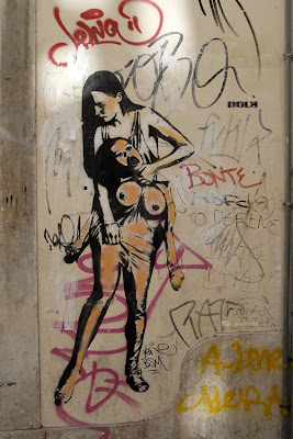 Esta obra utiliza a técnica de freehand e foi realizada por QUILL, um artista português criado em Boston, Massachussetts que posteriormente se mudou para Lisboa onde se licencia em Design Gráfico. Interessou-se aos 10 anos por BD mas só aos 22 começou a produzir stickers. Hoje, com 26 anos, divide-se entre graffiti, stencil, stickers e posters, assim como um sem número de trabalhos que vai realizando para marcas de roupa e material desportivo. Presente em inúmeras exposições nacionais e internacionais, é talvez um dos mais conceituados novos artistas portugueses, que se distingue por um traço caracterizador muito forte. Para saber mais sobre as obras destes artistas entra en http://www.fotolog.com/quill