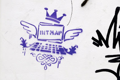 Bitmap é um artista de Lisboa, conhecido pelos stickers de grandes proporções e de enorme cuidado gráfico; é, no entanto, tímido na sua apresentação, preferindo uma atitude mais reservada. À tua frente podes observar a Grua. Esta obra foi realizada em Dezembro de 2006 com a técnica de stencil sobre papel. Dentro do Museu Efémero, poderás encontrar outro ícone deste criativo, o sticker do Lego. Para saber mais sobre as obras destes artistas entra en http://www.fotolog.com/bitmap02