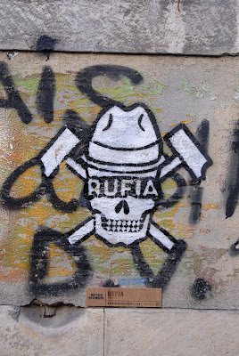 A sua cena está relacionada com as subculturas de rua, crítica social e política. Algumas pinturas são baseadas em letras de músicas underground. O mesmo artista surpreende-nos não só com a qualidade das suas obras como pela sua filosofia, que proclama: ¨AS RUAS SÃO A MINHA GALERIA PARA QUE TODA A GENTE POSSA VER AS MINHAS CENAS. ENQUANTO OUVER TINTA NA LATA ESTAREI SEMPRE A AGITAR.¨ Para saber mais sobre Rufia entra en http://www.fotolog.com/cao_das_botas/