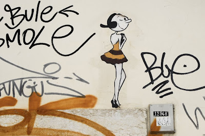 Olivia, artista espanhola natural de Barcelona, utiliza nesta obra a técnica de stencil sobre papel. A artista esteve em Lisboa com Dr Case e Coolture. Trabalha a figura de BD de Olívia Palito, vestindo-a em trajes variados. A expressão do sticker aponta para uma atitude da qual apenas a fisionomia nos lembra a original. Trabalha também graffitis e stencils com trabalhos em locais tão distantes como Xangai e Hong Kong. Ao nível da ilustração tem trabalhos editados em literatura infantil. Para saber mais sobre as obras deste artista entra en www.barcelonastreetart.net